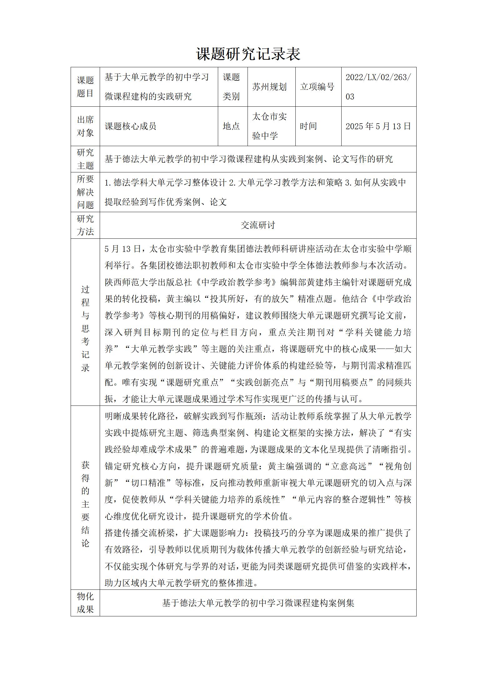 基于大单元教学的初中学习微课程建构的实践研究