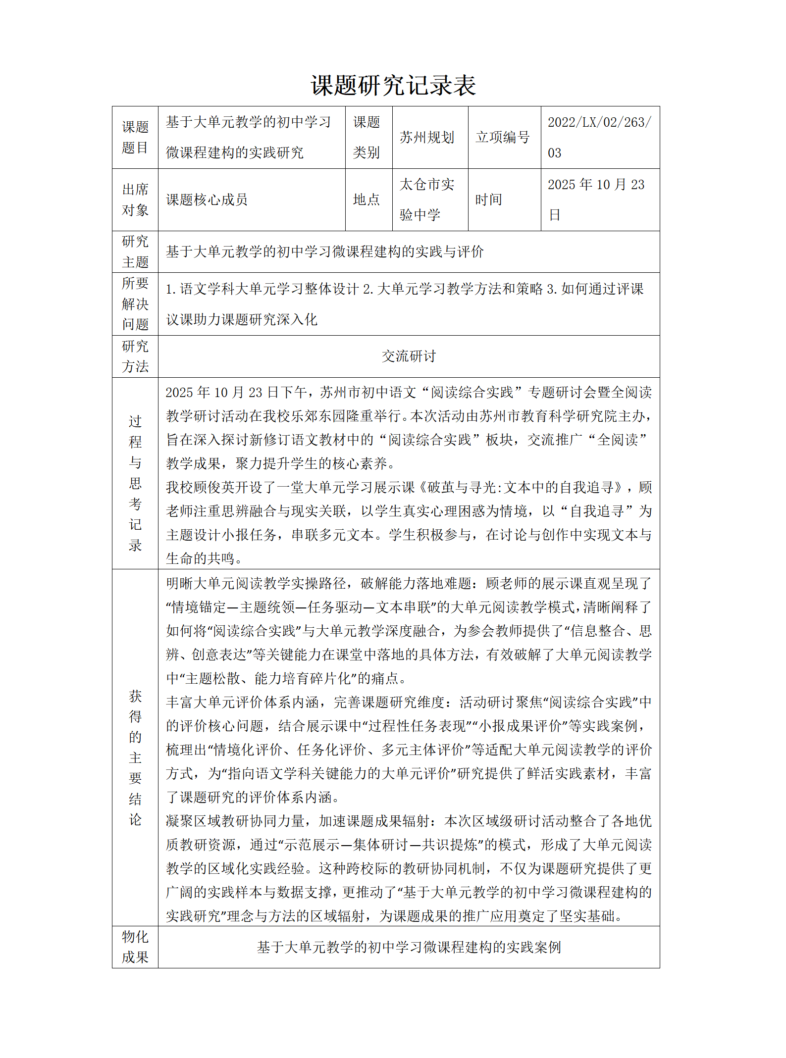基于大单元教学的初中学习微课程建构的实践研究