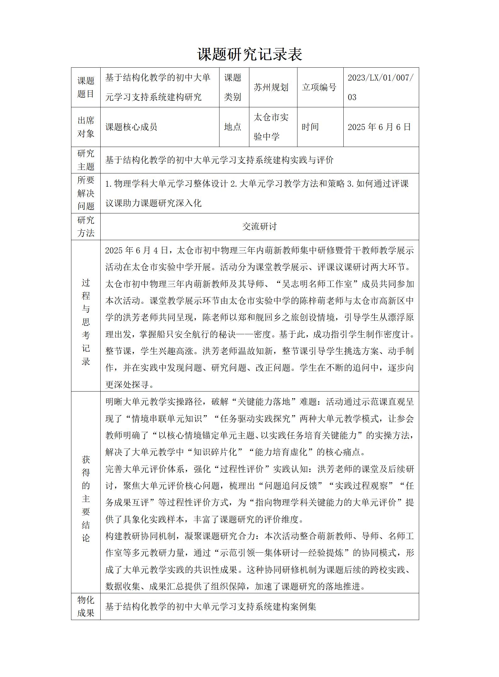 基于结构化教学的初中大单元学习支持系统的建构研究