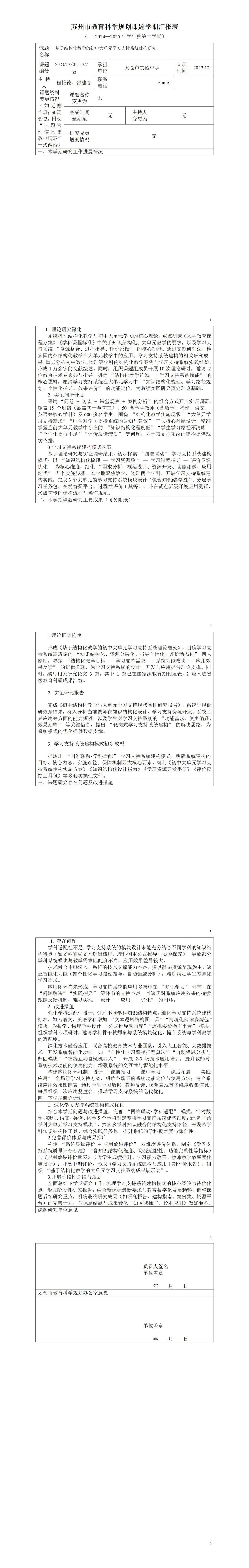 2024-2025学年第一学期 苏州市规划课题《基于结构化教学的初中大单》学期汇报表