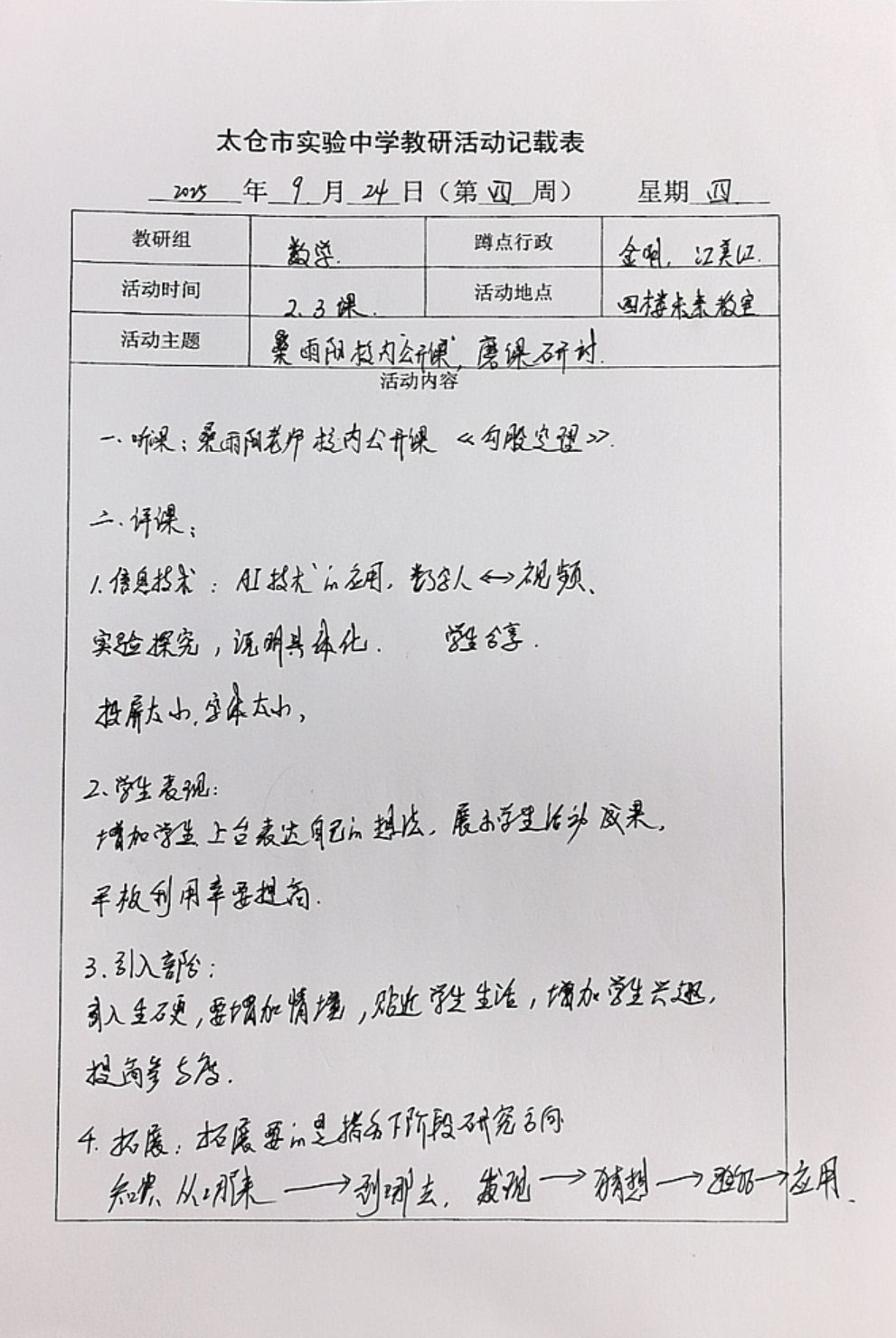 2025.9.24,桑雨阳老师开设校级公开课《勾股定理》,融合了AI、几何画板等信息手段,借助平板,让学生在线反馈结果,体现了数学与信息技术的跨学科融合。