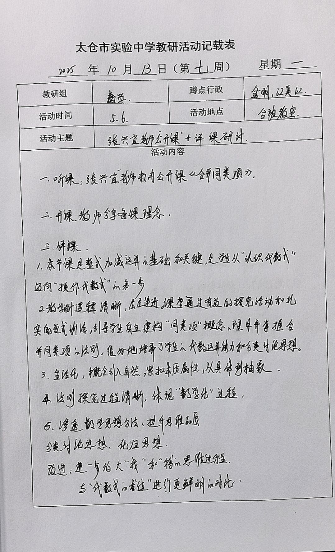 2025.10.13,张兴宜老师开设公开课《合并同类项》,数学组教师参与听评课。